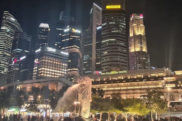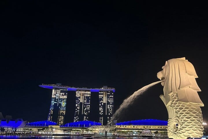 Explore Singapore from sunset to night on a guided tour with transport. Get up-close to the iconic Merlion, enjoy panoramic views of Marina Bay and the Spectra Light &Water Show, stroll through the illuminated Gardens by the Bay, and river cruise